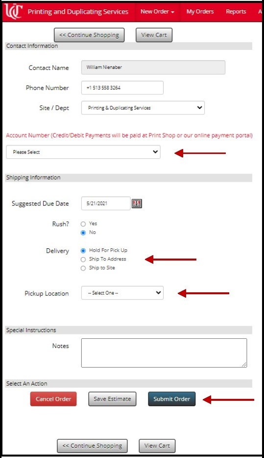These instructions are specific to UC/UC Health Customers. Non-UC/UC Health Customers should order using the instructions for Print Order.