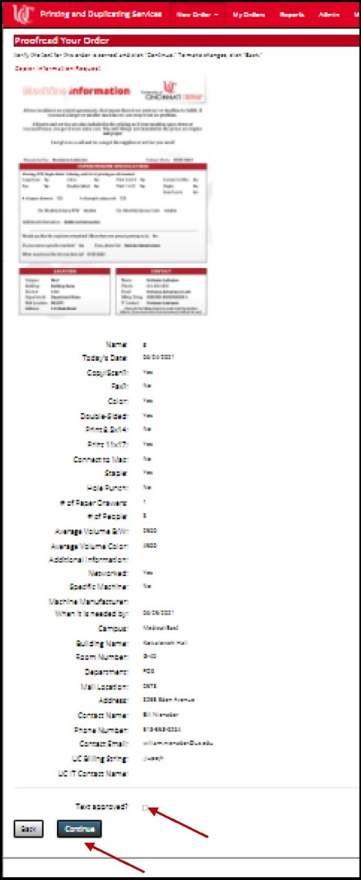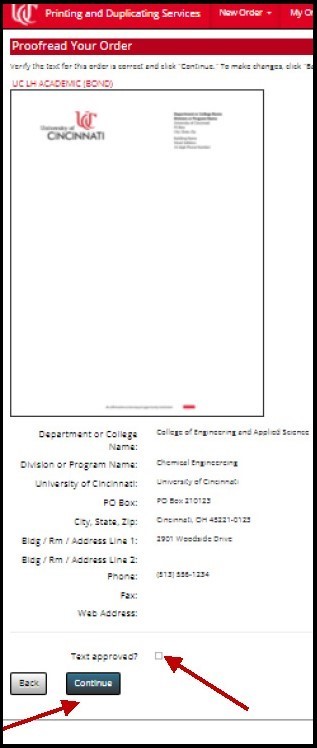 On the next page, please proofread all the information you input to ensure it’s accurate, then check the Text Approved box and click Continue again.